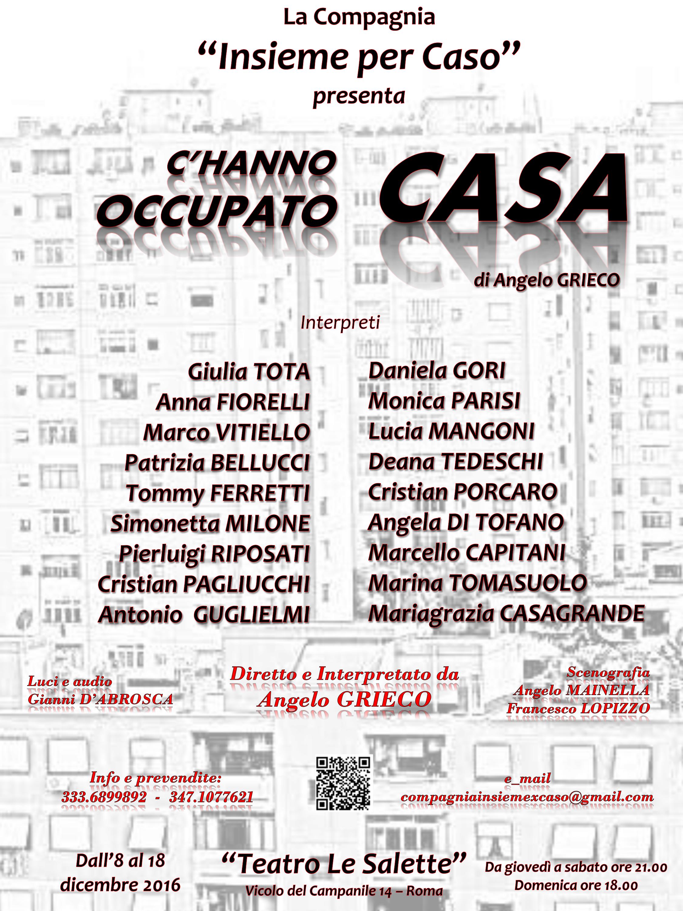Teatro Le Salette Vicolo del Campanile,14, Roma, ItaliaRegia: Angelo Grieco Cast: Giulia Tota, Anna Fiorelli, Marco Vitielli, Patrizio Bellucci, Tommy Ferretti, Simonetta Milone, Pierluigi Riposati, Christian Pagliucchi, Antonio Guglielmi, Daniela Gori, Monica Parisi, Lucia Mangoni, Deana Tedeschi, Christian Porcaro, Angela Di Tofano, Marcello Capitani, Marina Tomasuolo, Mariagrazia Casagrande Leggi Scheda