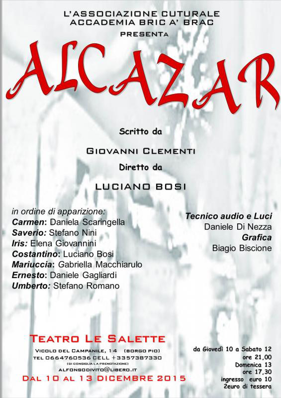 regia di ALESSANDRA MUSIO La storia Un sogno, nascosto per tanti anni, finalmente sembra avverarsi! Ma, chissà perché, c’è sempre un Ma che si mette in mezzo. In questo caso è un esperimento che la professoressa dell’ultimo esame da dare, decide di assegnare ai suoi allievi migliori. Ed ecco qua Filippo e Claudia e i bicchieri e i sacchetti e i tradimenti e l’insicurezza che questi lasciano addosso e poi c’è la claustrofobia e… Insomma, riuscirà Mara a realizzare quel sogno tanto atteso? Solo chi Vedrà Saprà!! Le note di regia Questo spettacolo è una scommessa. Pensato con un altro cast, si è dovuto reinventare ed adattare ad attori diversi. Ma, al contrario di quello che si potrebbe pensare, il cambio ha dato una marcia in più alla storia. Quindi ben vengano i cambiamenti quando diventano fonte di stimoli. I tecnici Aiuto Regia – ARMANDO DAINELLI Direzione artistica – CLAUDIO AUFIERI Allestimento scenico & Mixer Luci e Suoni – RICCARDO CASCIOLI Il Cast FEDERICA LIMONE Mara GLORIA PANELLA Sonia ARMANDO DAINELLI Filippo ALESSANDRA TOMASSI Claudia LAURA TOFFOLO Anna DANIELA DEL PESCE La Professoressa ARTUSI CRISTIANA SILVESTRI JESSICA la portiera