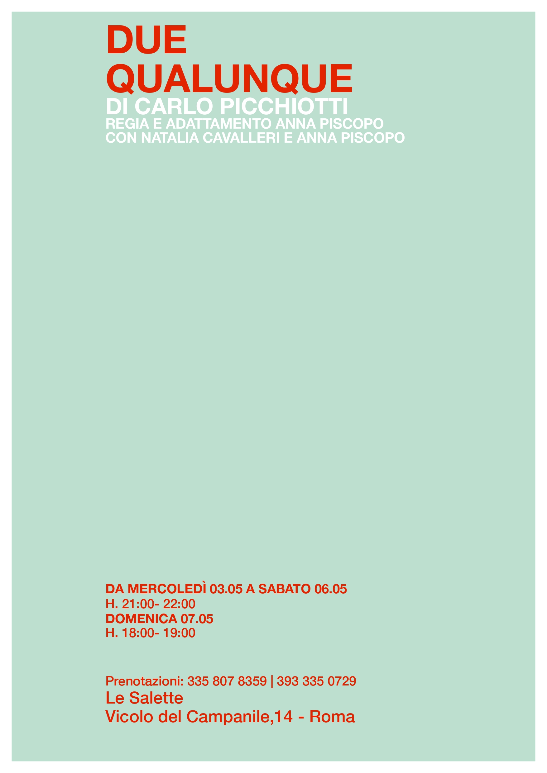 DUE QUALUNQUE DI CARLO PICCHIOTTI REGIA ANNA PISCOPO
