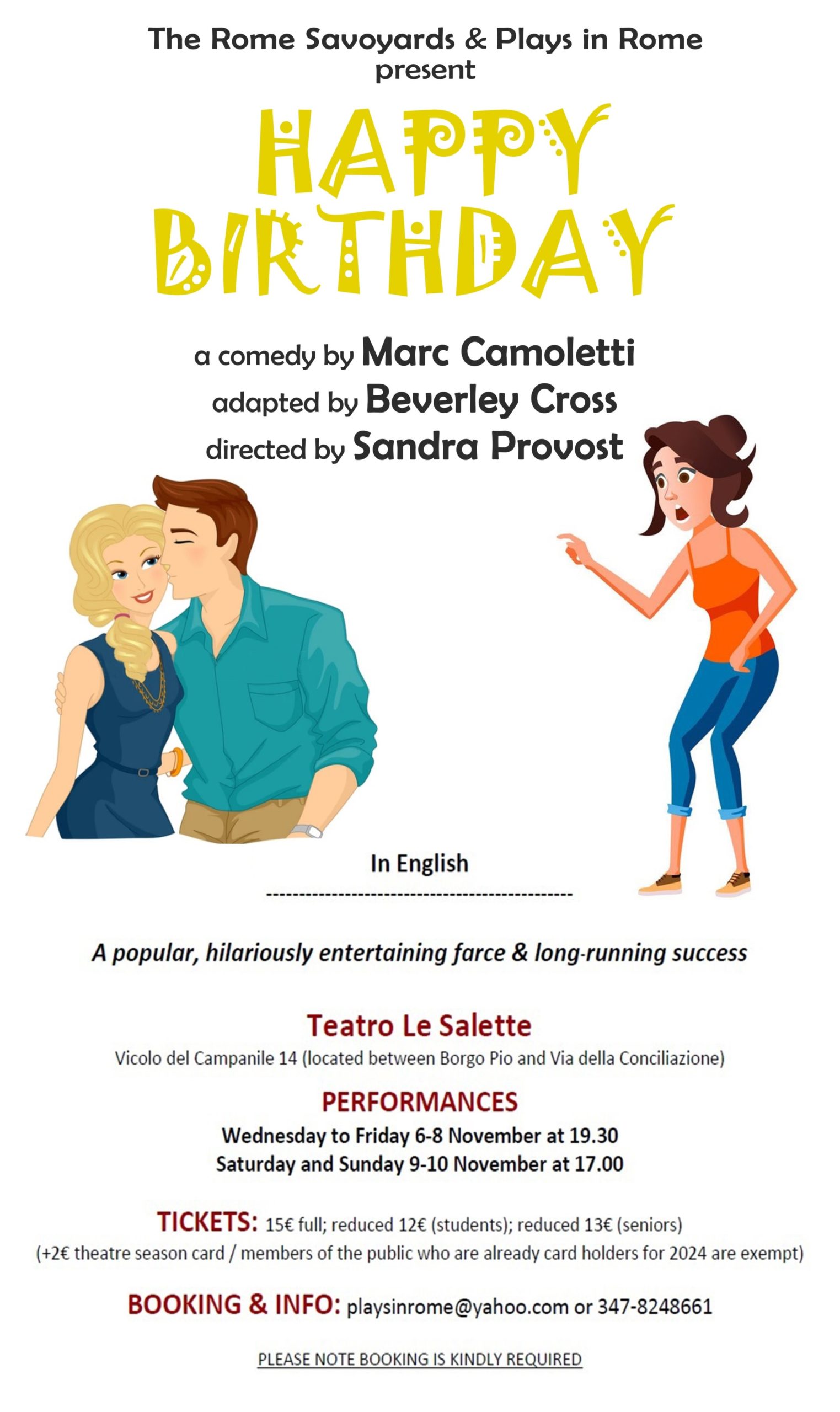 Per prenotare: playsinrome@yahoo.com oppure 347-8248661