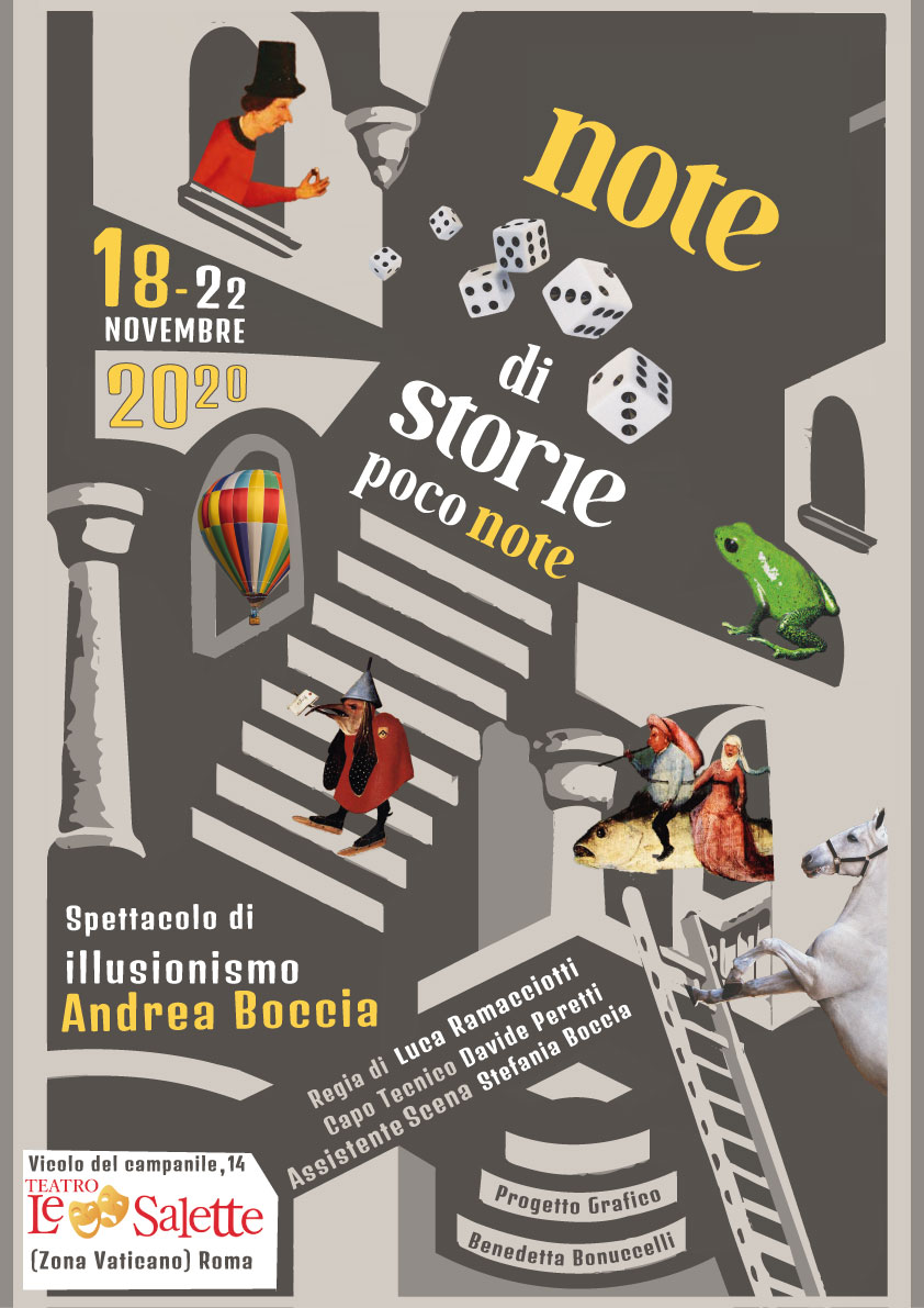 Cosa è la magia? Un sogno? Qualcosa che viola le leggi della fisica? Un atto di fede? Questa domanda non ha una risposta perché la magia ha origine nella notte dei tempi e ha da sempre accompagnato l’uomo ispirandone fantasie e poesie. Dimenticando manipolazioni, colombe, grandi illusioni ci ritroveremo in uno spazio che convenzionalmente si potrà definire palco, ma che in realtà potrebbe benissimo essere un cenacolo, un salotto letterario tra amici dove non ci sono barriere mentali tra le persone che vi prenderanno parte. Gli spettatori verranno condotti per mano tra l’atemporalità e il sogno dall’ospite di casa, l’illusionista Andrea Boccia, che narrerà quelle storie che sono rimaste in disparte nei grandi libri, ma che hanno caratterizzato eventi e personaggi. Storie poetiche, surreali dove il tempo pare ruotare su se stesso come un ensō senza fine. Racconti di personaggi che nella loro vita hanno toccato il misterico in perenne equilibrio tra realtà e fantasia. Ma come possiamo sapere con certezza dove termina l’una ed inizia l’altra? Attraverso le storie e la magia in esse contenute potremo passare un’ora sulle soglie di un’altra realtà dove la bravura di Andrea avrà il compito di farci capire che la magia può essere nella vita di tutti giorni (magari anche in una semplice borsa da viaggio) e lo farà dal 18 al 22 novembre con lo spettacolo di illusionismo “Note di storie poco note” presso il Teatro le Salette di Roma che già per la sua collocazione (in un palazzo alle propaggini del Vaticano sotto il famoso Passetto) ci farà percepire la storia e la magia. (prenotazioni al 3933350729). Lo spettacolo prodotto da Alfonso Di Vito vede il contributo tecnico di David Peretti e Stefania Boccia e la regia di Luca Ramacciotti.