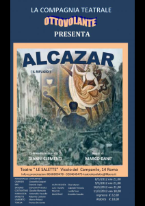 Siamo a Roma, nell’inverno tra il 1943 ed il 1944, nazisti e fascisti già sentono l’avvicinarsi della sconfitta e seminano il terrore con bombardamenti, rastrellamenti, deportazione fame e miseria. Ma la vita continua. Una compagnia di avanspettacolo fa le prove in una cantina usata come rifugio antiaereo, per portare in scena un varietà. Un varietà da tempo di guerra, con pochi mezzi ma, in fondo al cuore, tante speranze. In ALCAZAR, che prende il nome da un teatro di bassa categoria, l’atmosfera drammatica del periodo bellico, è allentata dall’indole popolare dei personaggi che si esprimono in dialetto romanesco del tempo, con battute divertenti ed espressioni taglienti ma mai volgari. Tra uno che “pija d’aceto” e un altro che “ariva callo callo”, la storia della compagnia del Commendator Diotallevi vi farà vivere la scena sperando che qualche sorriso e qualche lacrima risplendano nei vostri volti.