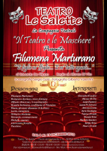 L’appuntamento da non mancare per i prossimi mesi è dal 9 al 19 dicembre al Teatro Le Salette, in Vicolo del Campanile, nella cornice della casa di San Pietro che anche questa volta presterà il palcoscenico all’amico San Gennaro. Dopo tante richieste rappresenteremo Filumena Marturano, che non è soltanto la “madre” delle opere di Eduardo De Filippo, ma trattasi di Commedia Universale … speriamo che il Maestro non si rivolti nella tomba! Un abbraccio a voi tutti.
