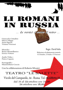 Le ottave selezionate per lo spettacolo sono parte degli undici capitoli che compongono “Li Romani in Russia”. Ciò si è reso necessario esclusivamente per un mero discorso temporale. L’intera Opera avrebbe occupato ben più di una serata ma abbiamo mantenuto una linea cronologica e logica degli eventi narrati da Marcelli cercando di estrapolare dal testo le ottave che più ci avevano colpito o che più parlavano di quel dramma spesso dimenticato che è stata la Campagna di Russia.