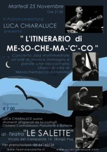 Concerto Jazz multimediale un’ora di immagini, musica e parole che raccontano stralci di vita di Mesochemacco (acronimo).