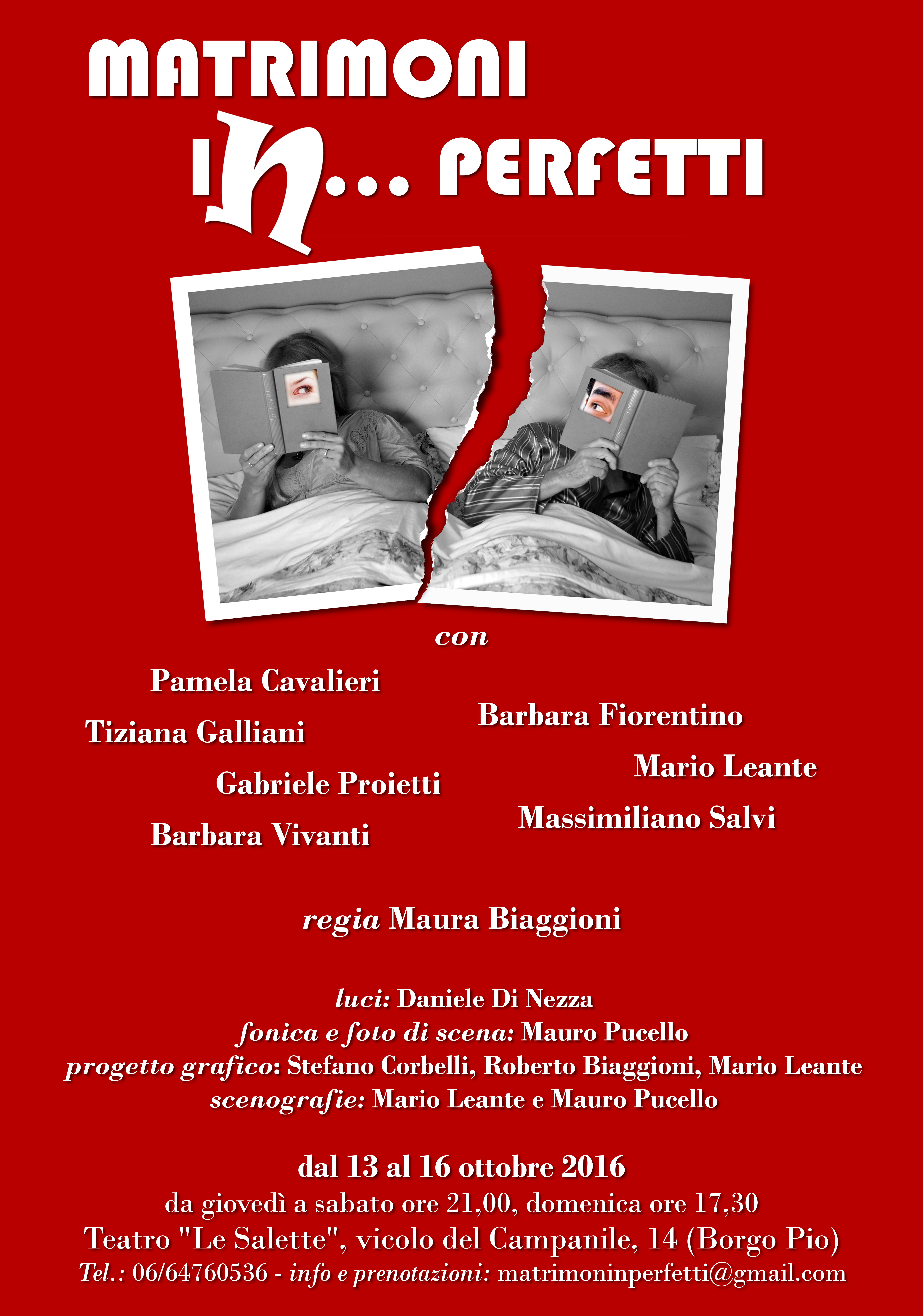 Di qui l’immagine della locandina, non a caso in bianco e nero, come le vite ormai senza colore delle coppie della commedia, ma proiettata su un rosso acceso a ricordo della passione preesistente! Il colore è lì, dietro gli angoli della fotografia, ed emerge dallo strappo generato dal tempo che scorre, prepotentemente, come a voler domare il grigiore delle immagini!